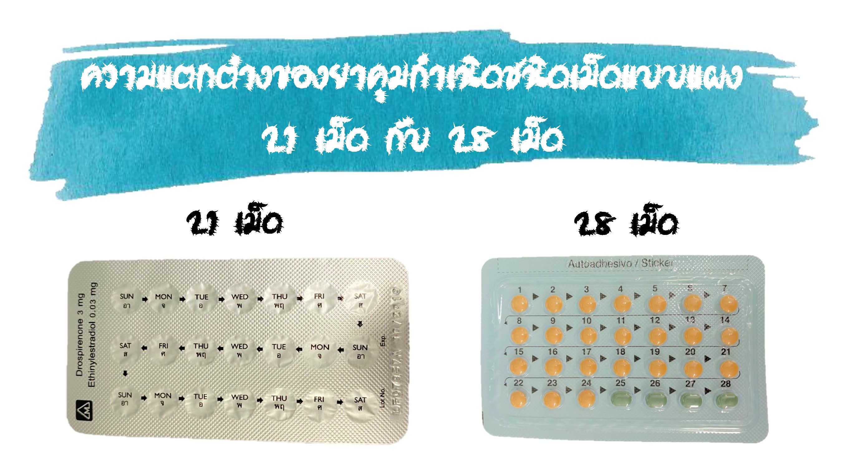 ความแตกต่างของยาคุมกำเนิดชนิดเม็ดแบบแผง 21 เม็ด กับ 28 เม็ด
